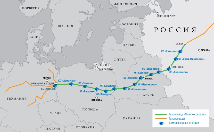 Yamal Europe gas pipeline on the map