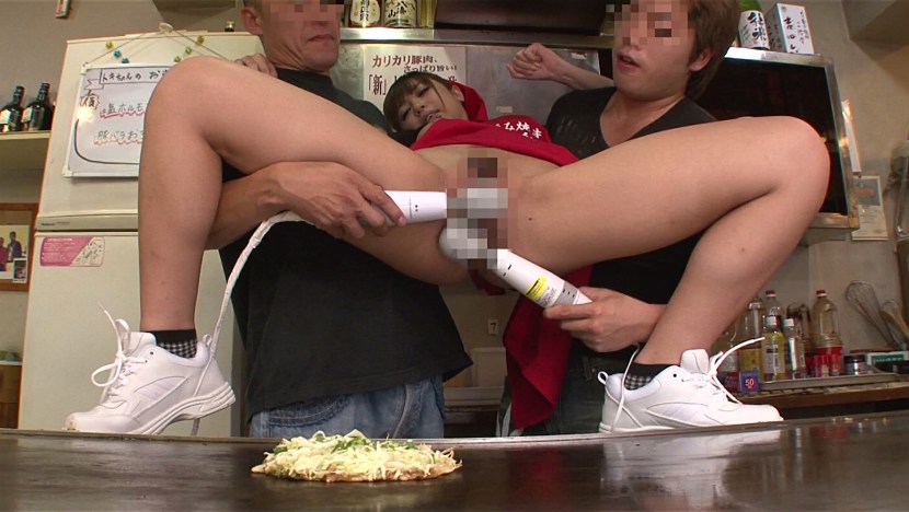 Drunk woman a bottle in the ass