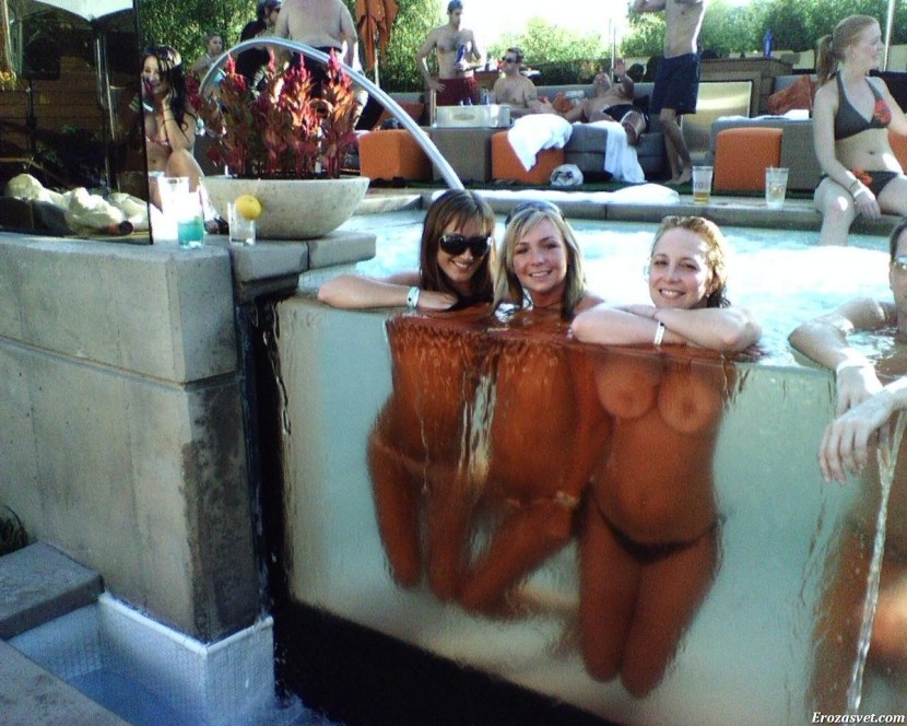 Lesbian orgy in the pool