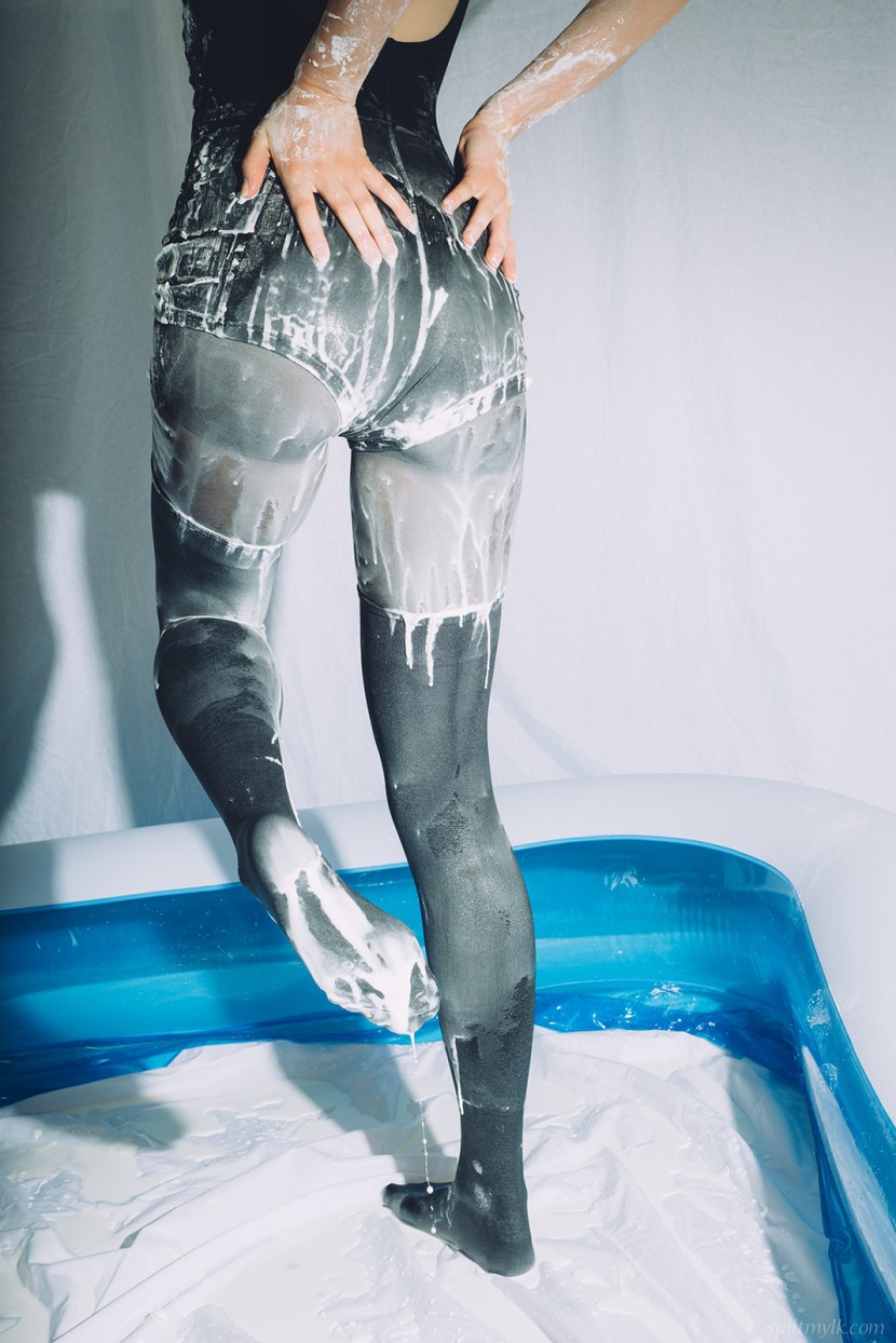 Wetlook Messy Tights bathing in Wet Wam tights