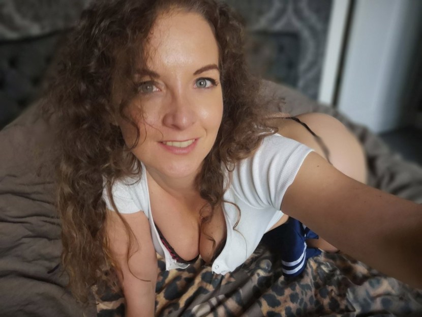With a curly curl without panties