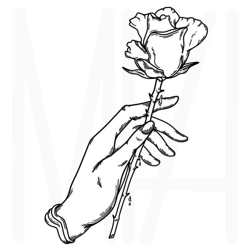 The hand draws a flower