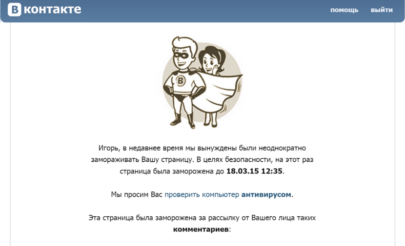 The account was temporarily blocked by VK