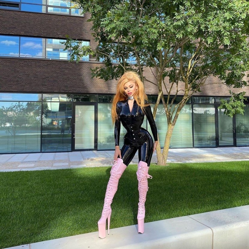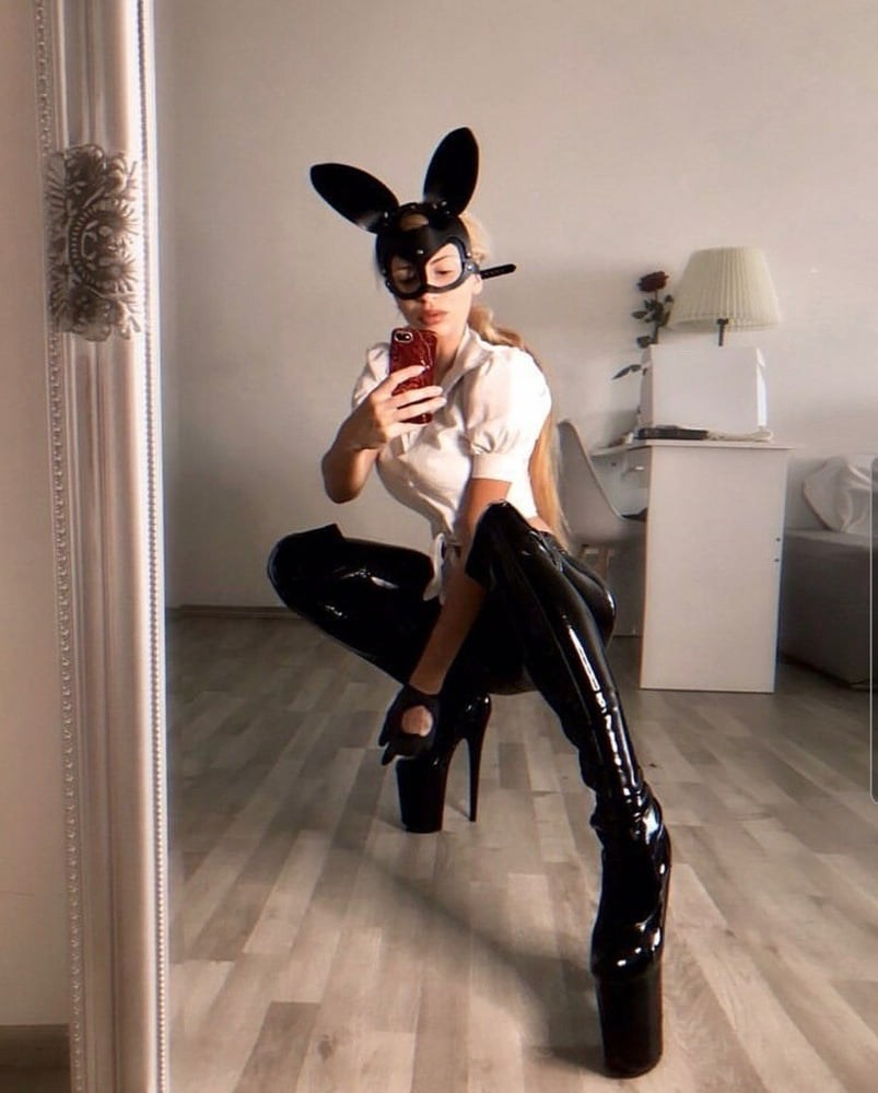 Camella in latex leggings