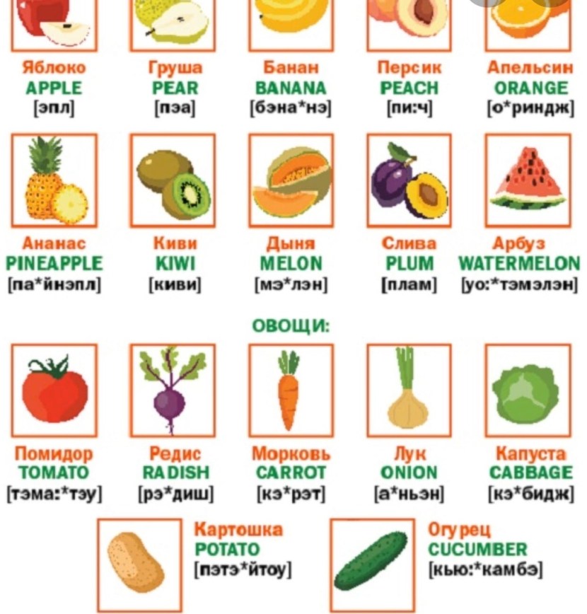 Fruits vegetables berries in English with translation