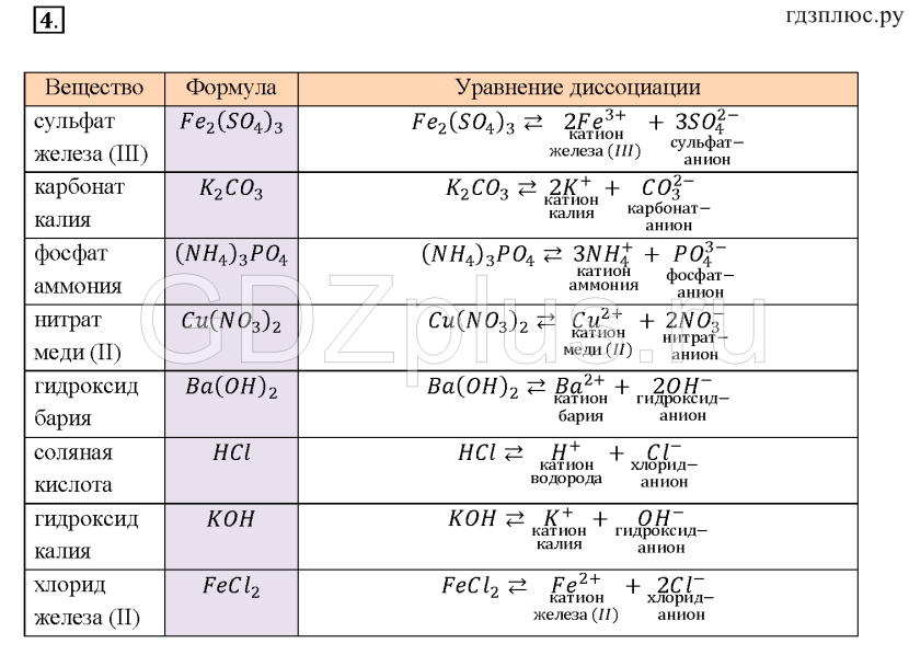 Substances chemistry grade 8 table