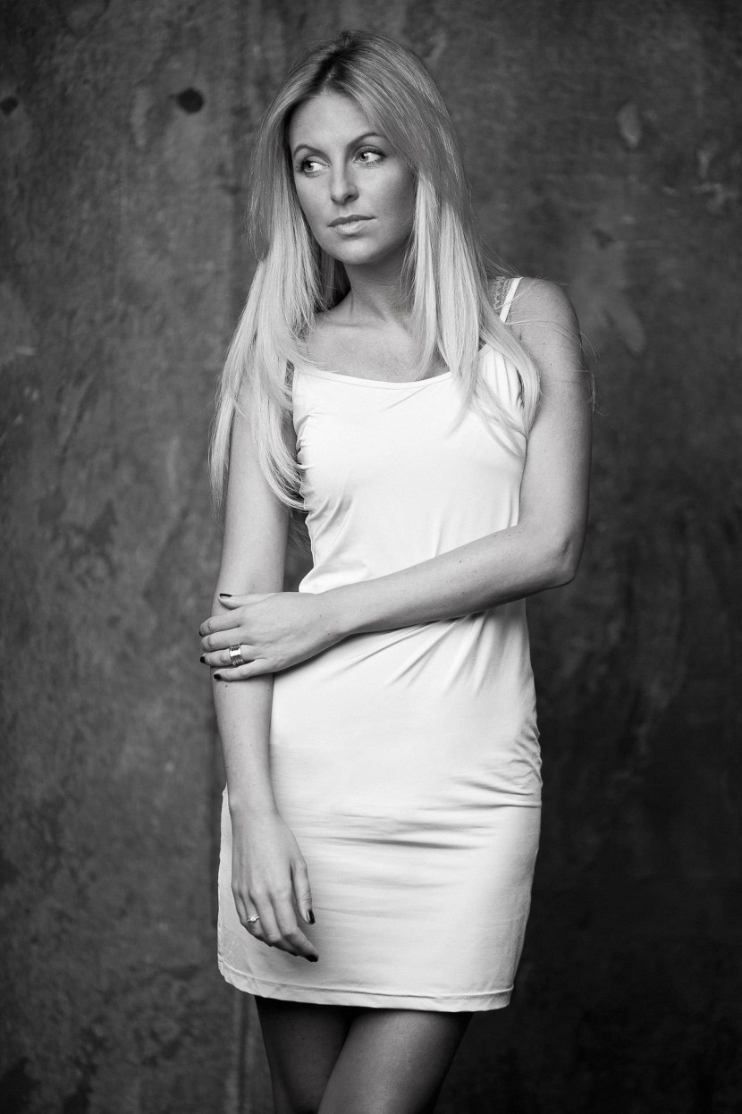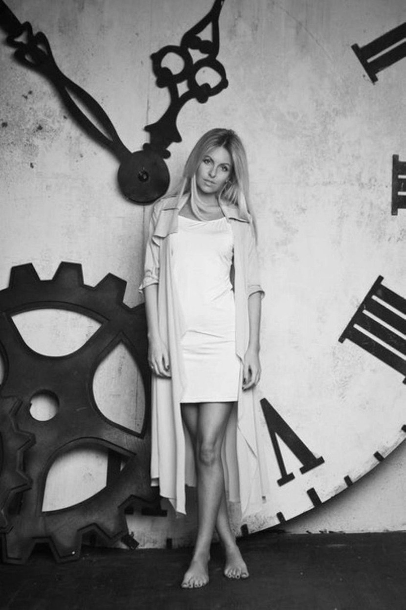 Maria Orzul in a short dress