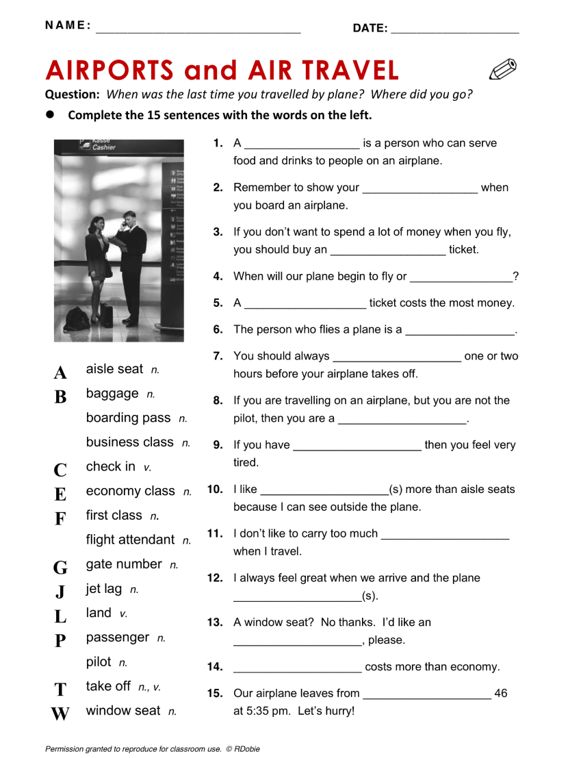 At the airport, exercises in English