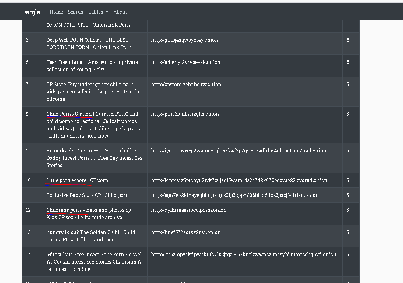 Darknet site list with ChildPorn