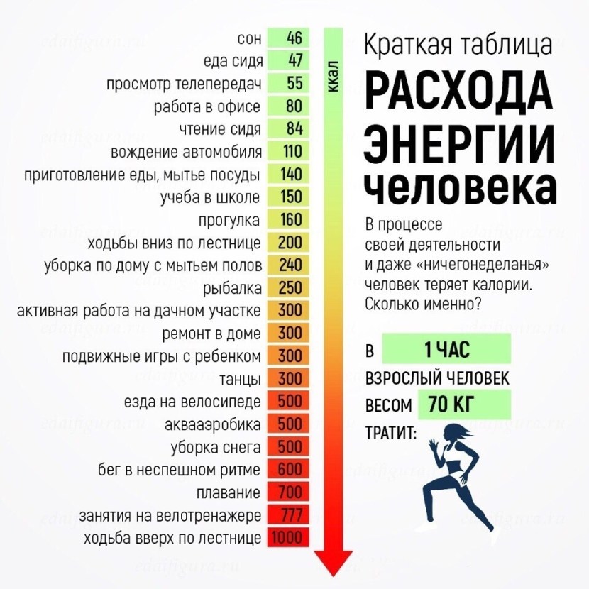 Caloria consumption in various types of activities table