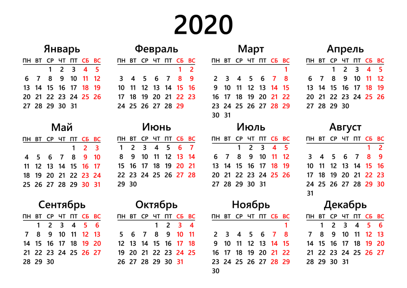 Calendar 2020