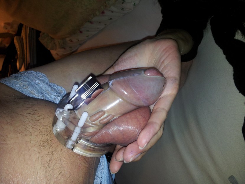 A man cums in a belt of fidelity