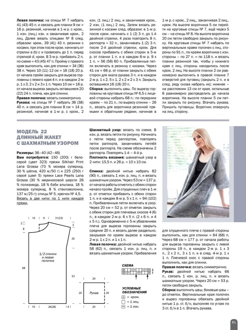 Elongated knitted vest with knitting needles scheme with a description