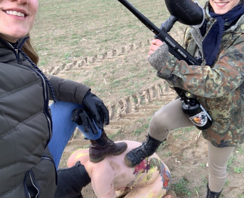 Two mistresses dominate the slave