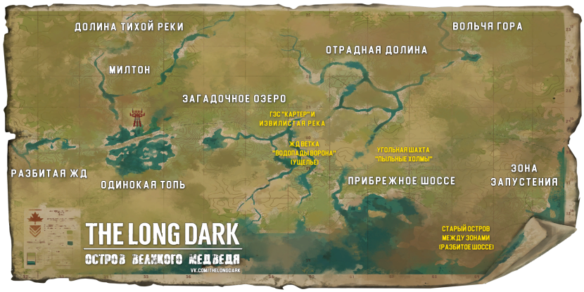 Map of the mysterious lake The Long Dark in Russian