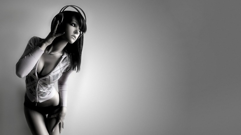 Girls on the desktop blackly white