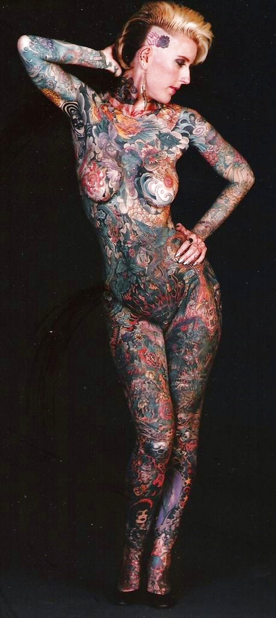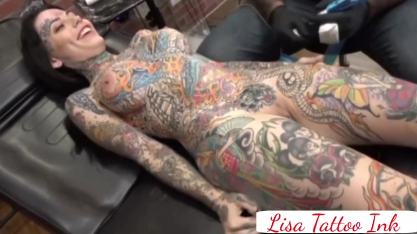 Naked woman all in tattoo
