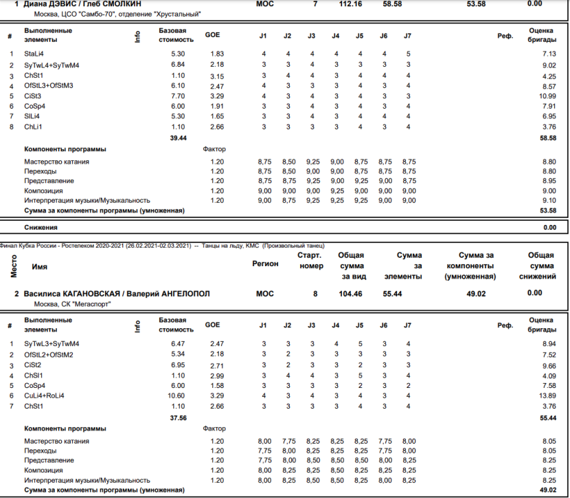 Protocol of the program of Alexandra Trusova