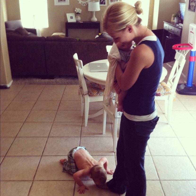 Woman stomps for a child