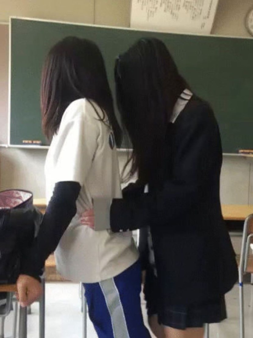 Between the legs at school