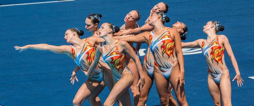 Synchronous swimming without swimwear