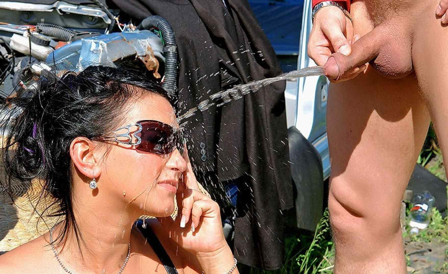 Pissing in the mouth in nature