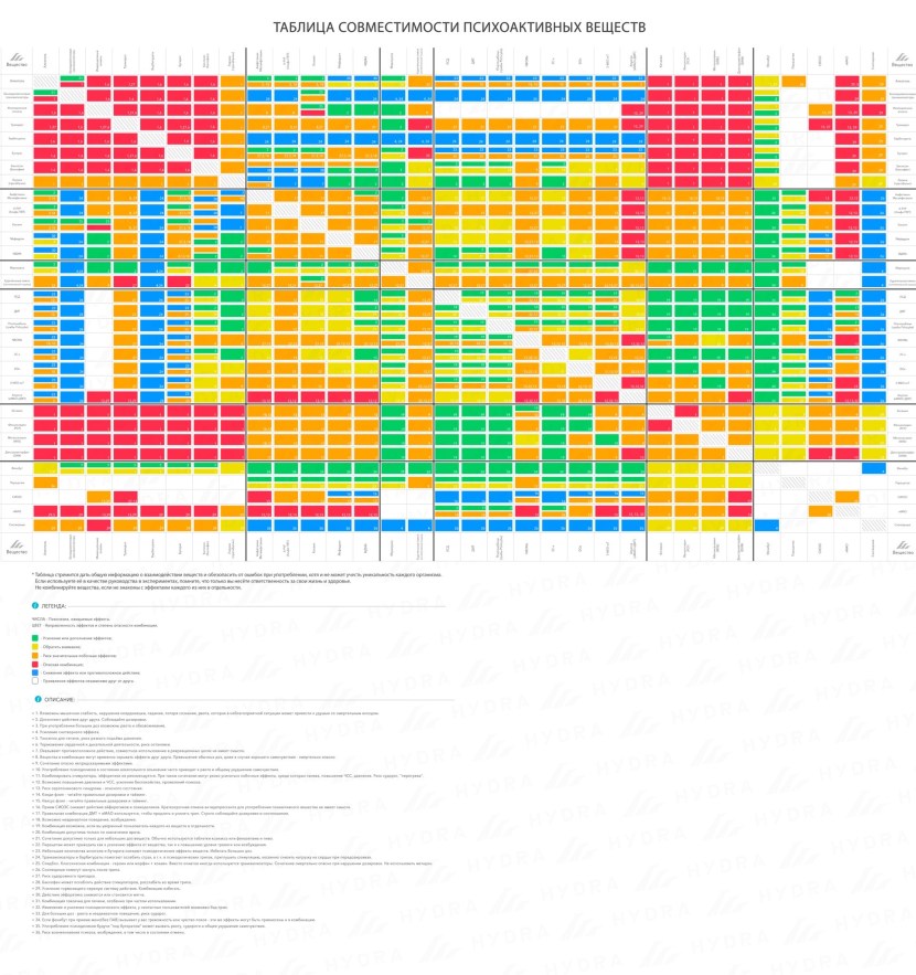 Table of combination of psychoactive substances