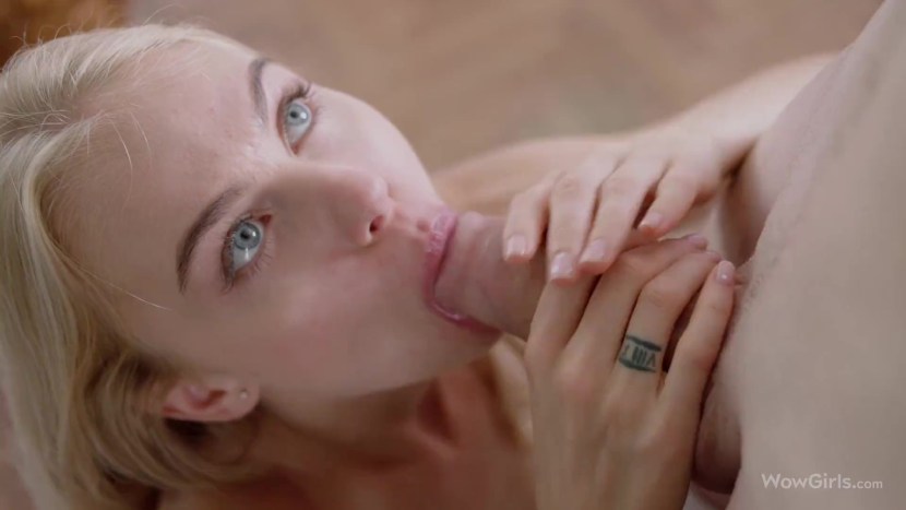 Blue-Eyed Blonde Anna Giving a Hot Blowjob