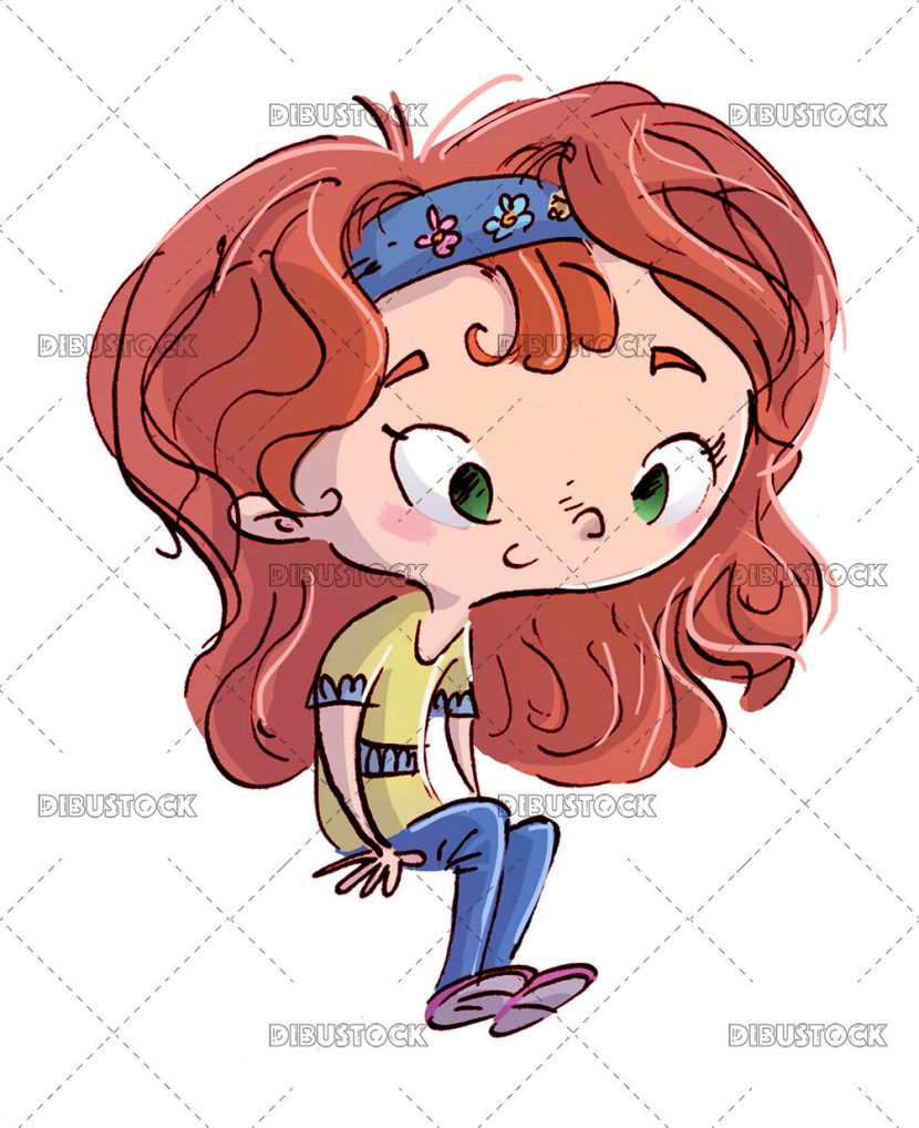 A red -haired child sits with his back