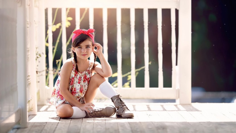 Girl in a dress sits