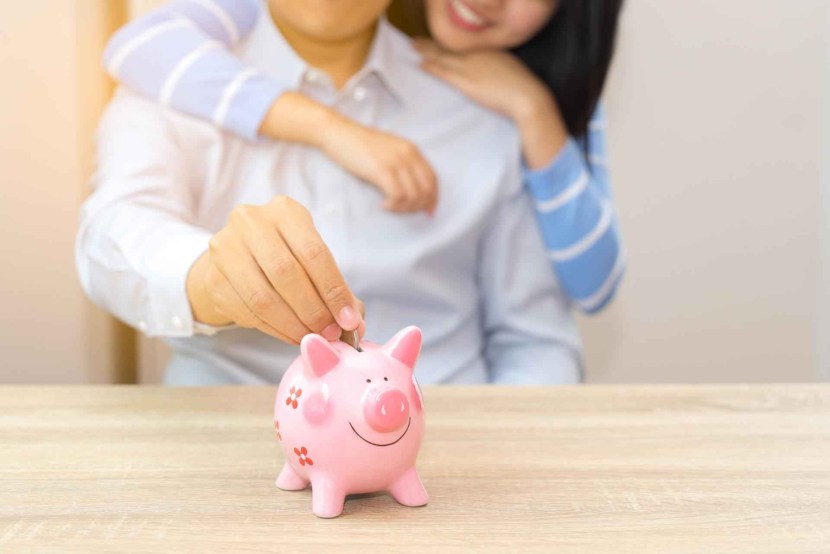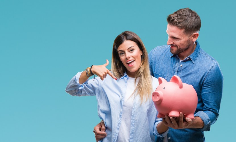 Girl and guy with a piggy bank