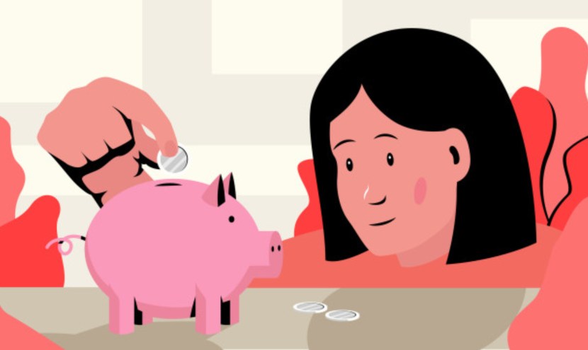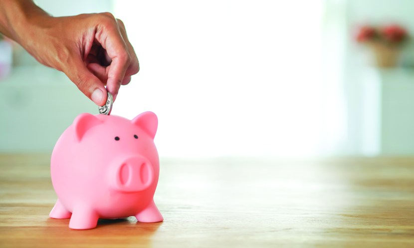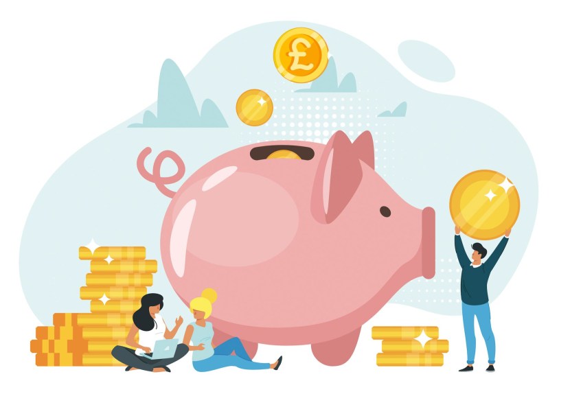 A little man with a piggy bank