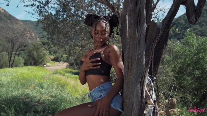 Brunette in the forest for money