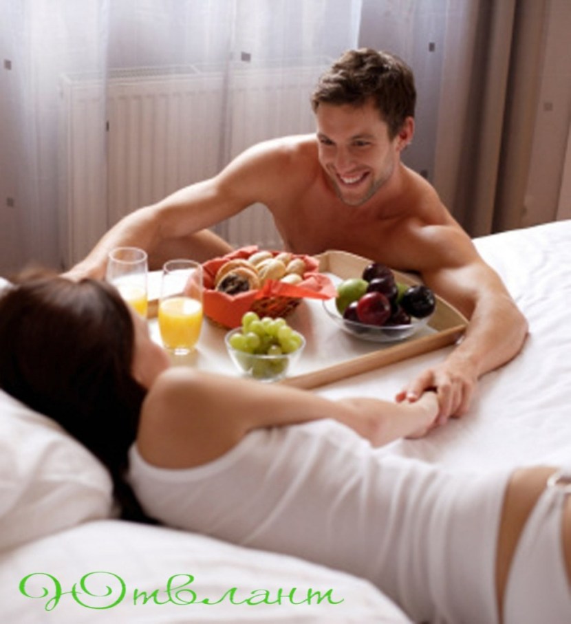 The guy brings breakfast to bed