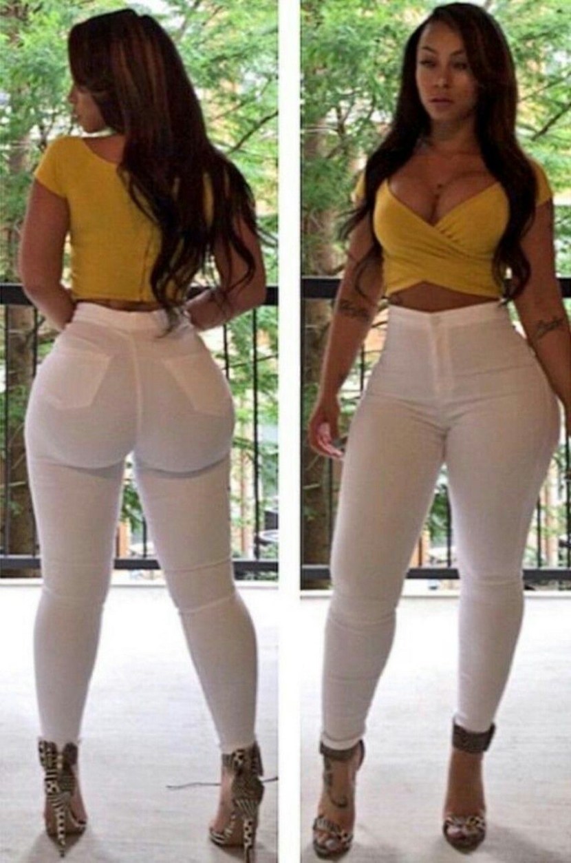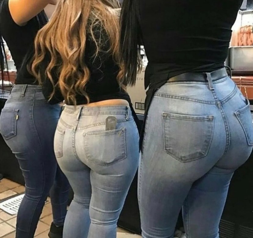 Girls in tight jeans with a high waist