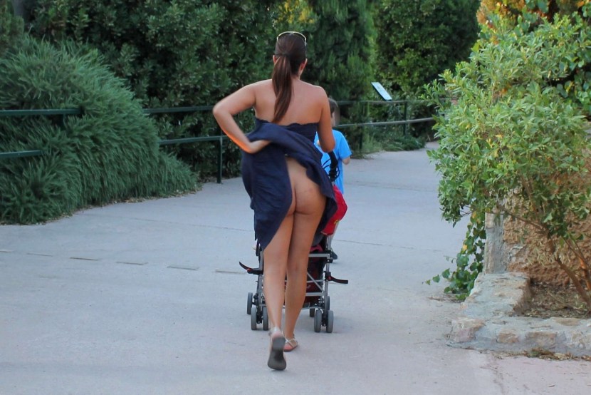 Mom with strollers without panties