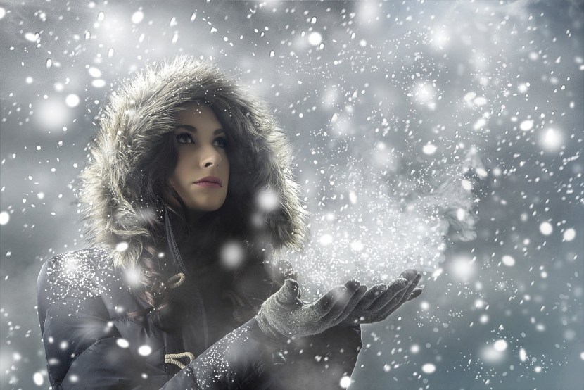 Girl and snowfall
